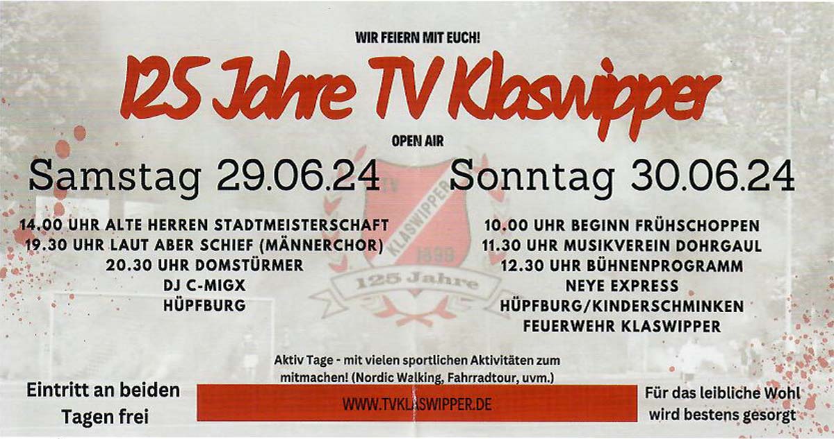 Der TVK hat zu seinem 125 Jubiläum ein volles Programm für das Wochenende.